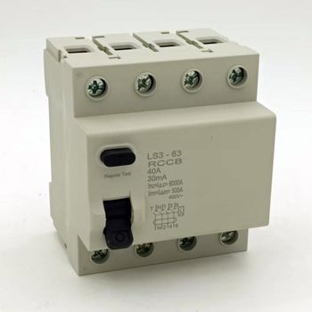 Disyuntor RCCB tipo B de China 4P 400V 25A/32A/40A/63A/30mA Protección de acción de corriente residual de fuga de cobre y plástico